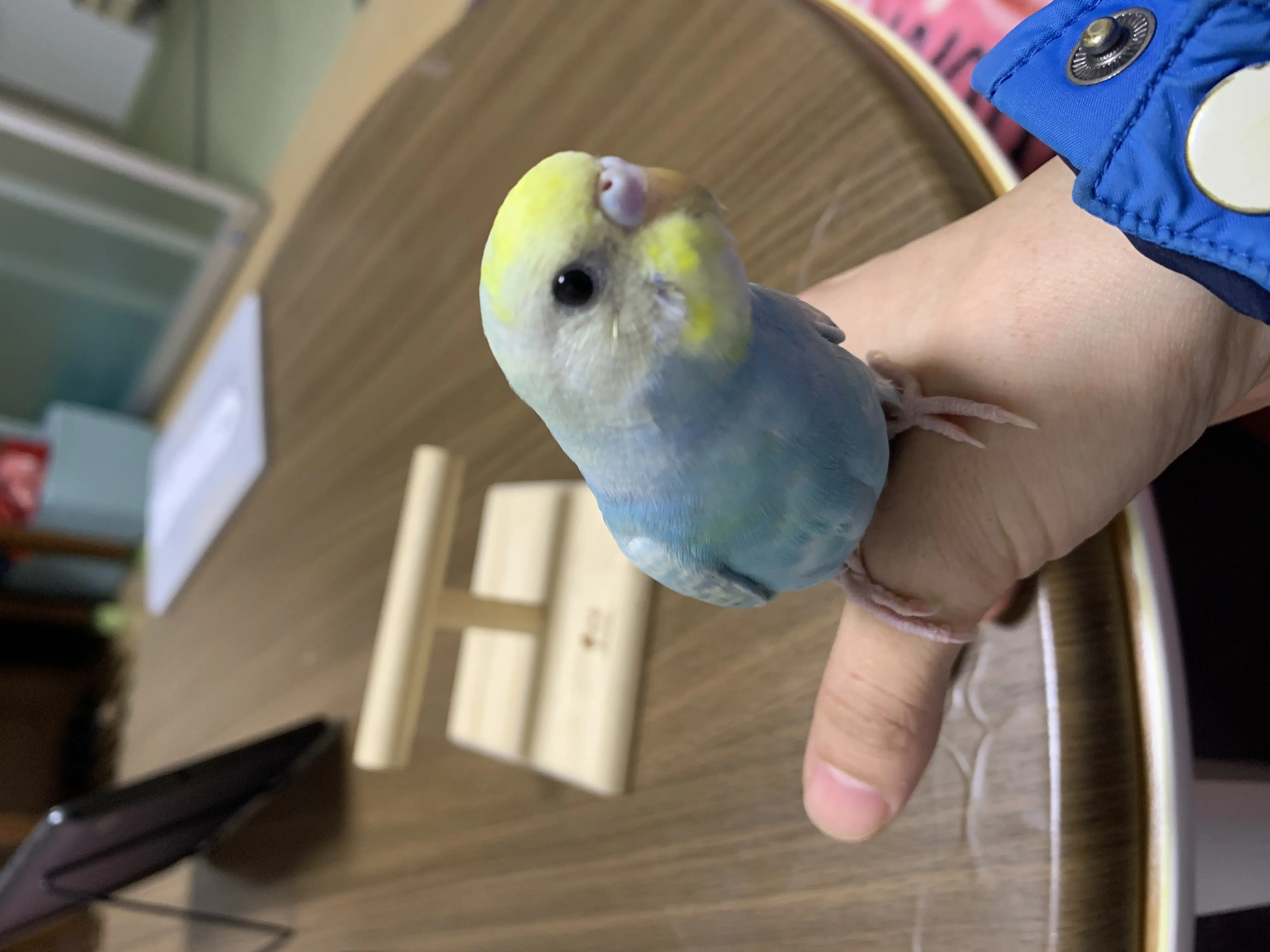 水色と薄黄色のセキセイインコです 身体はまだ小さくまだ性別もわからないほど幼いです