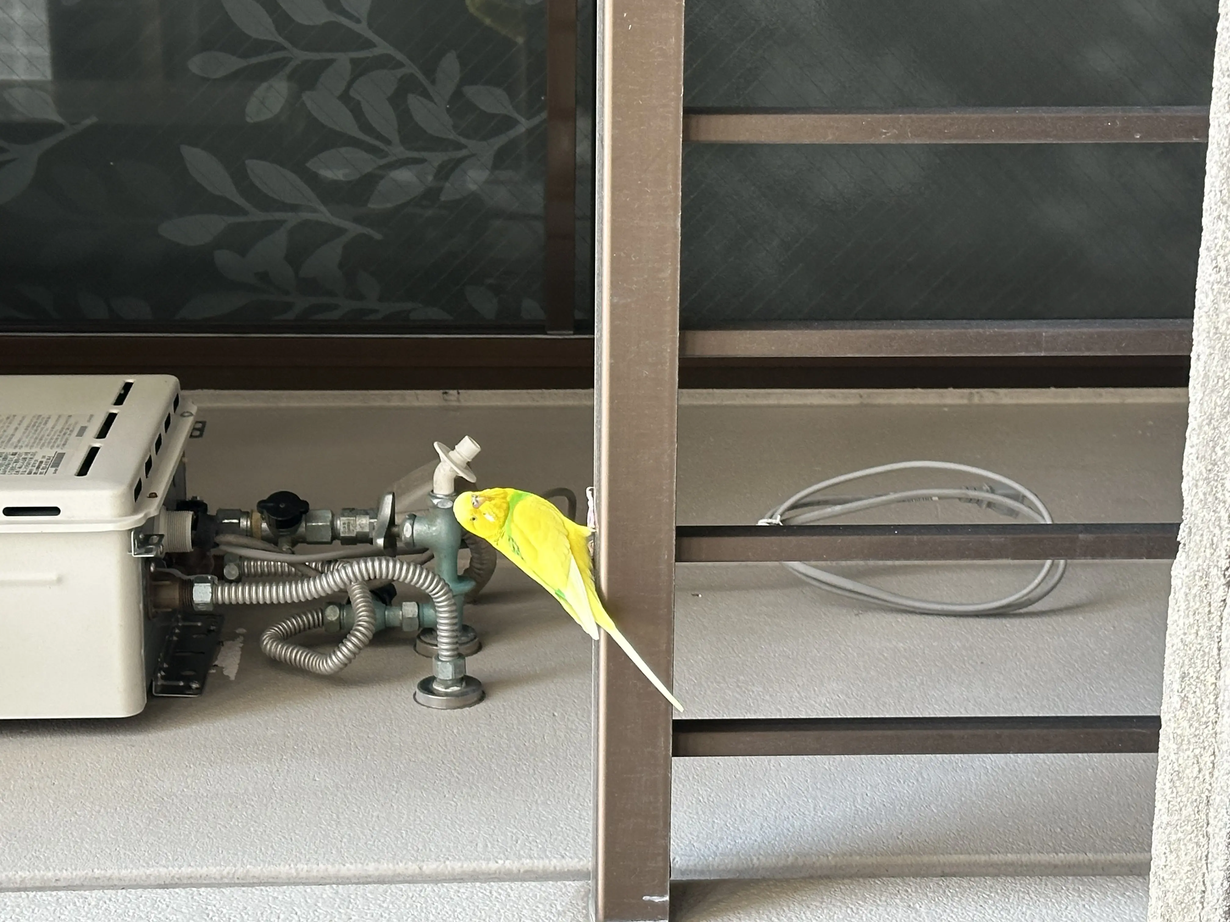 黄色のセキセイインコを見かけました。 飼い主さんにつながって