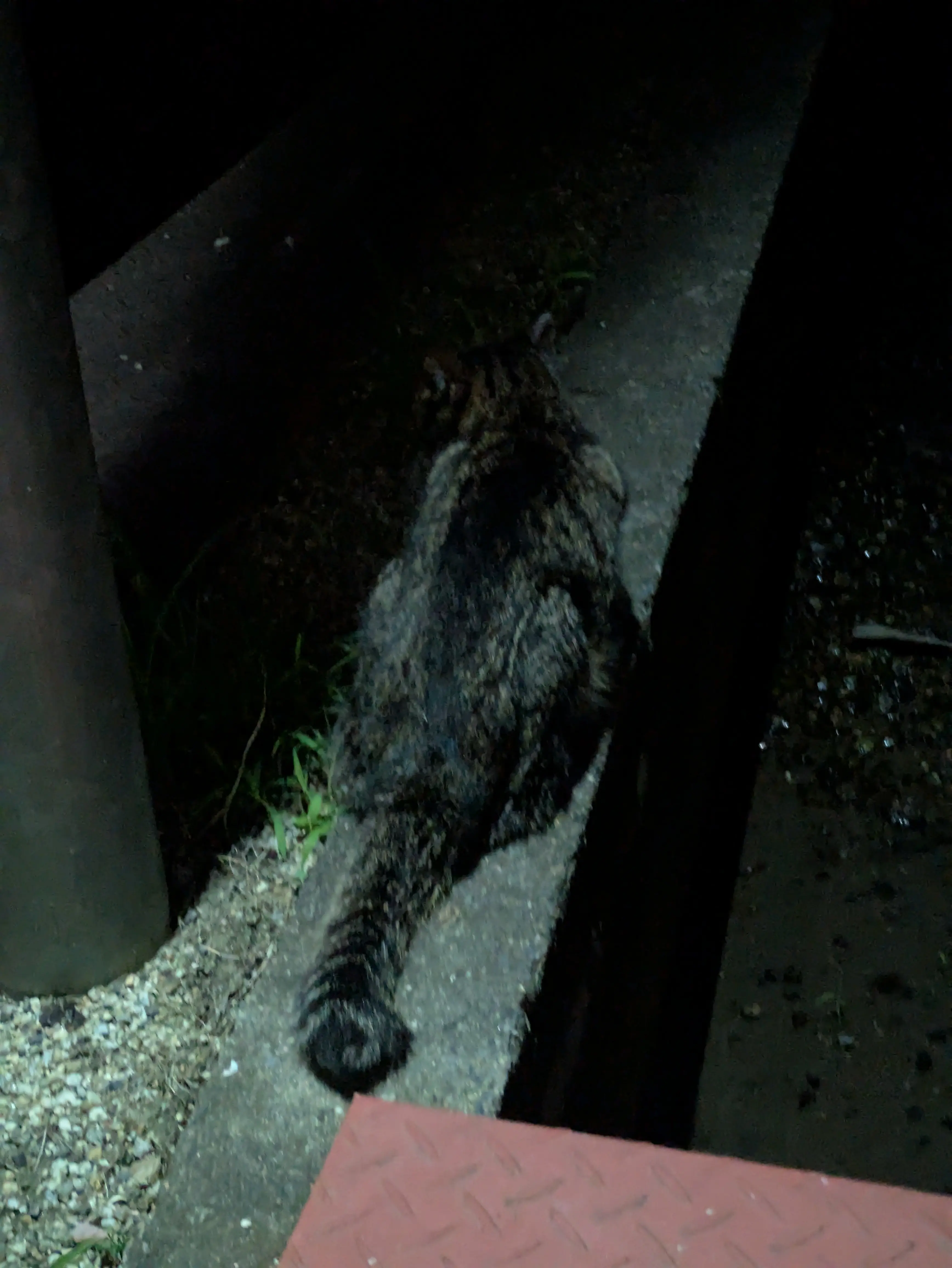 赤に模様のついた首輪をしていて、毛の色は茶色と白です。