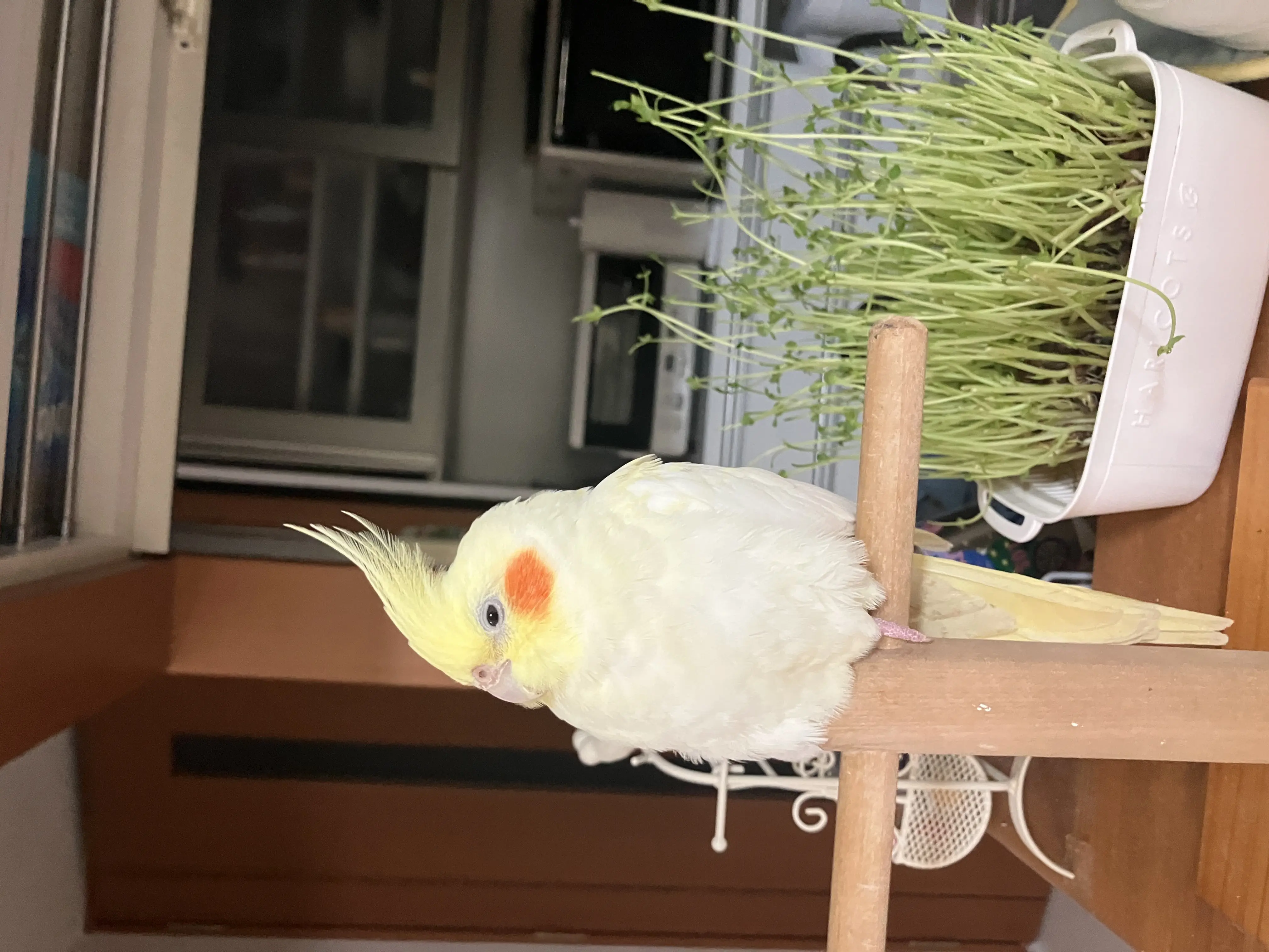 黄色い体にオレンジ色のほっぺで、背中にはうっすら黄色のマダラ模様があります。大きさは20〜30cm程度で、鳩の1〜2回り小さか細めです(オカメインコの中では大きめ) 少しでも似た特徴がある小鳥を見かけた際はご連絡・可能な範囲で保護をお願いいたします。