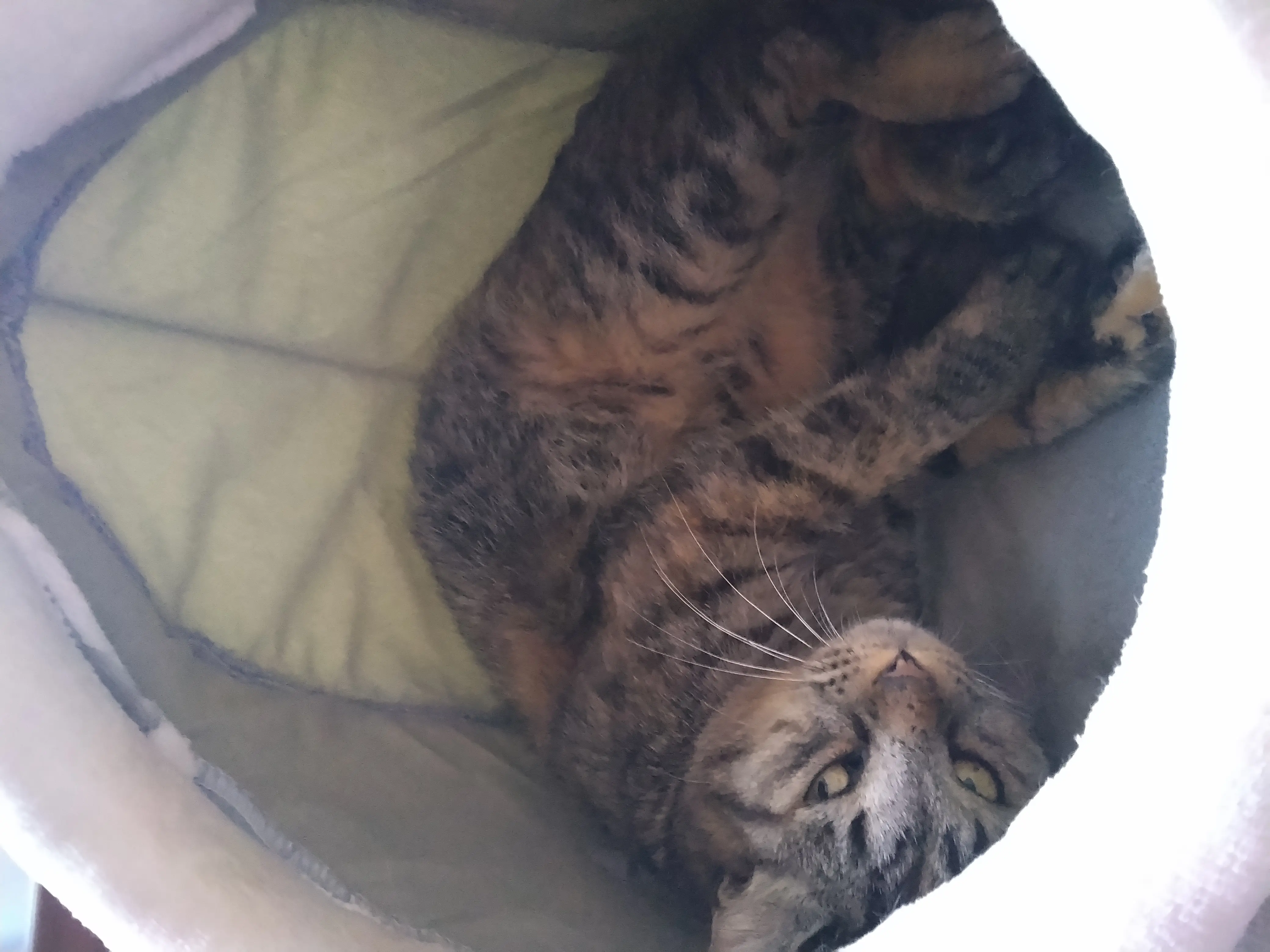 赤い首輪 わりと人なつっこい やや目が離れ気味で、お顔がオレンジ色っぽいキジトラです。 尻尾は真っ直ぐです。 持病があり、呼吸困難になることがあります。