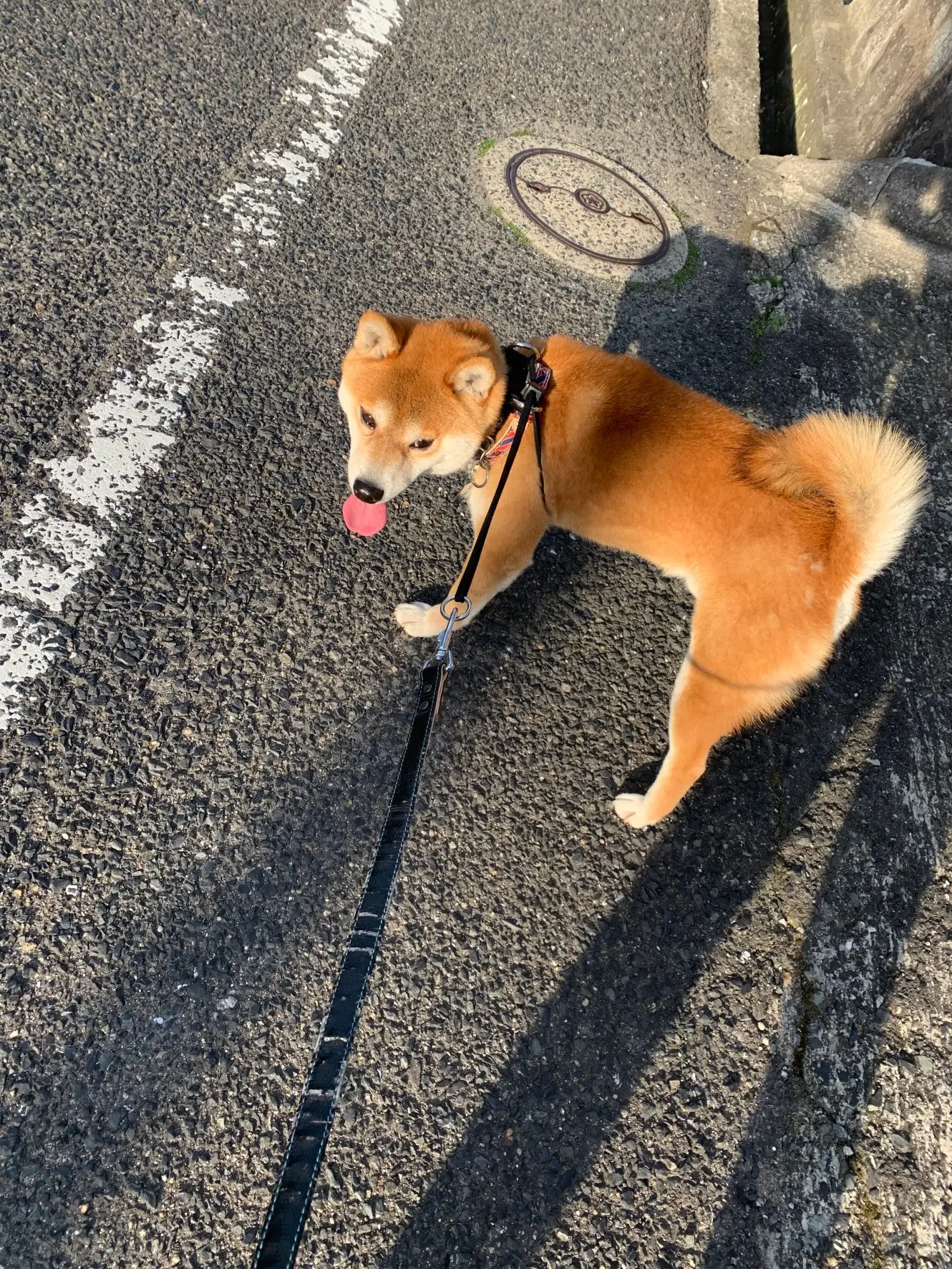 黄色の首輪にシルバープレートでランという名前入り