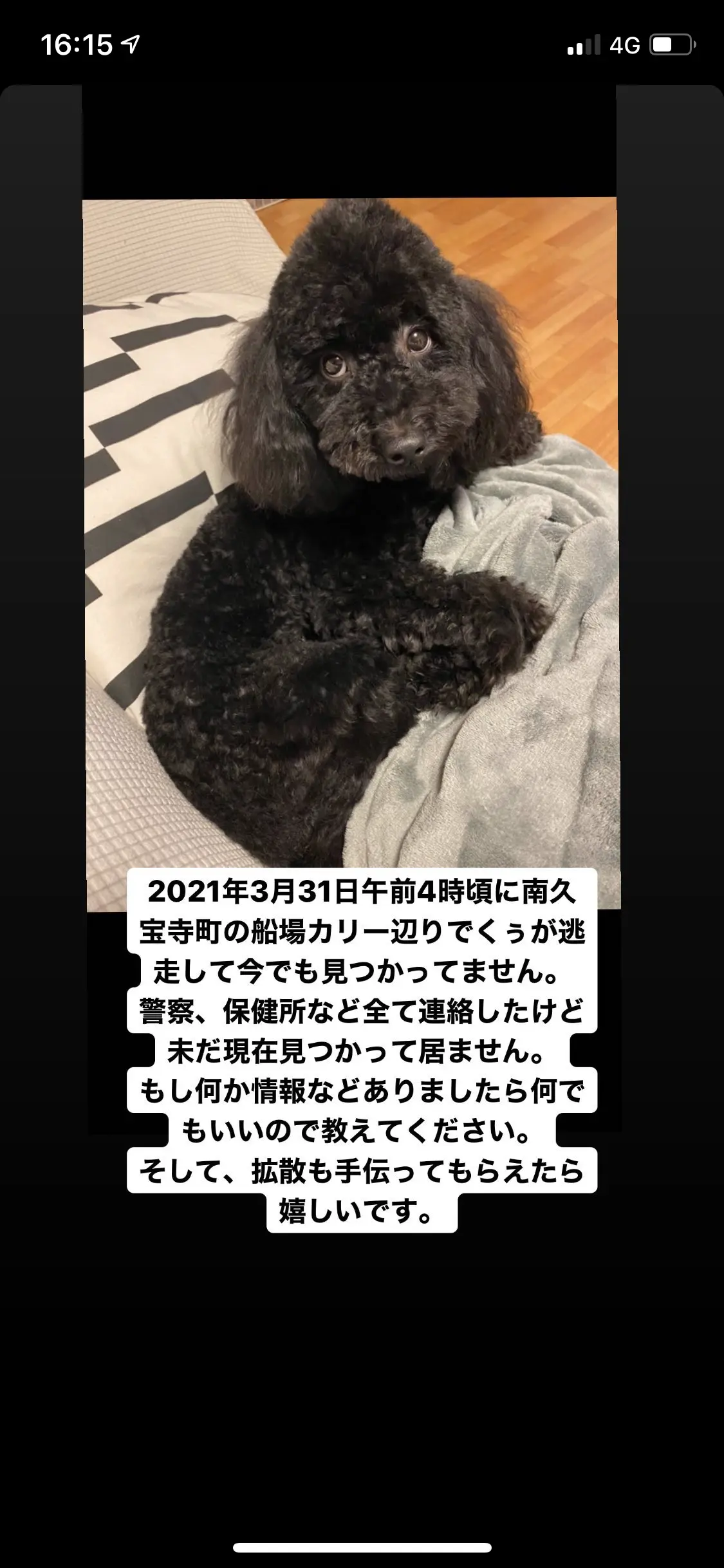 真っ黒のトイプードル 手足長め 細身 白色の首輪 オムツ着用