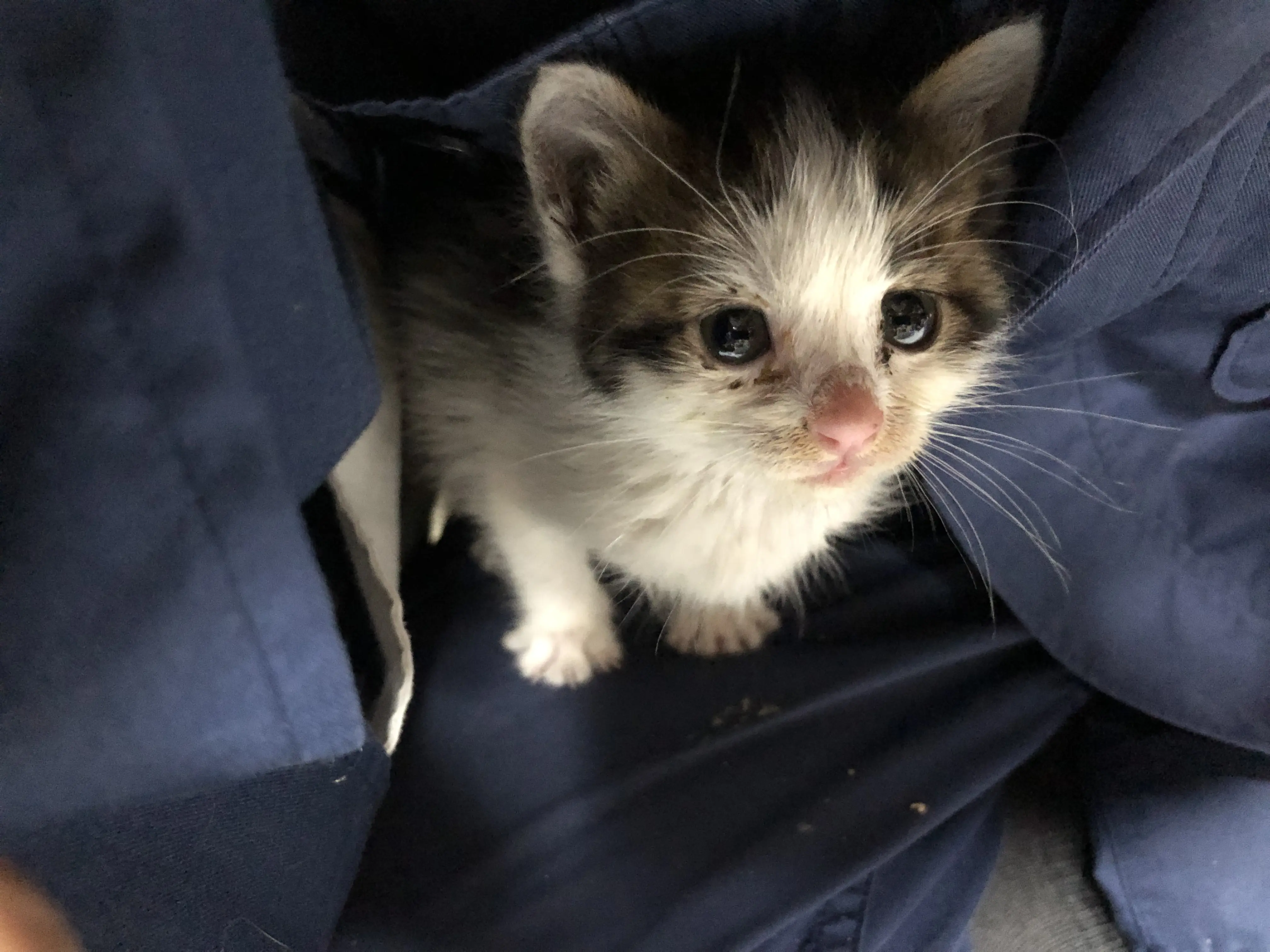 生後2ヶ月くらいの子猫で人馴れしています。 お腹はすかせていましたが、栄養状態は悪く無い様子です。 ざっと見たところ ノミもついていない様子。 トイレの躾がされています。