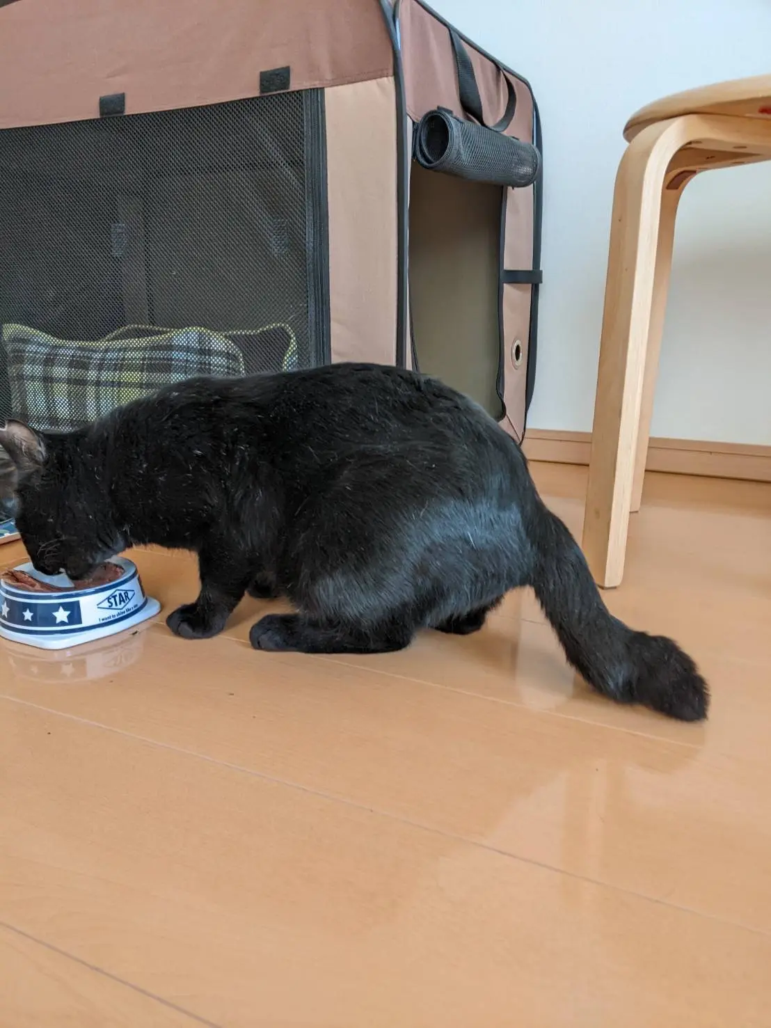 ・黒猫 ・未去勢のオス(当方で去勢、桜耳にしました) ・かぎしっぽ ・餌をあげると人懐っこい ・少し高めの鳴き声