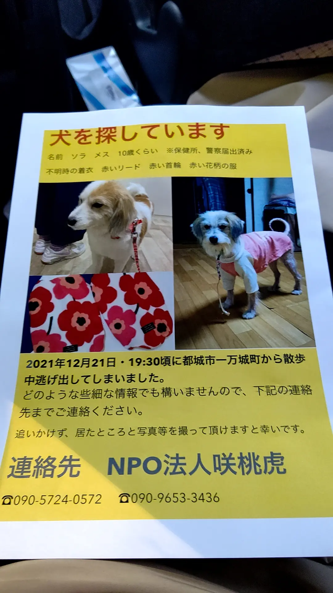 赤いリード 赤い首輪 赤い花柄の服