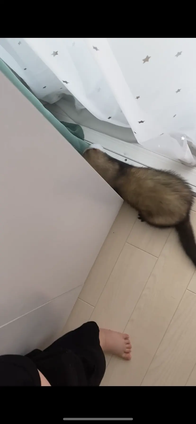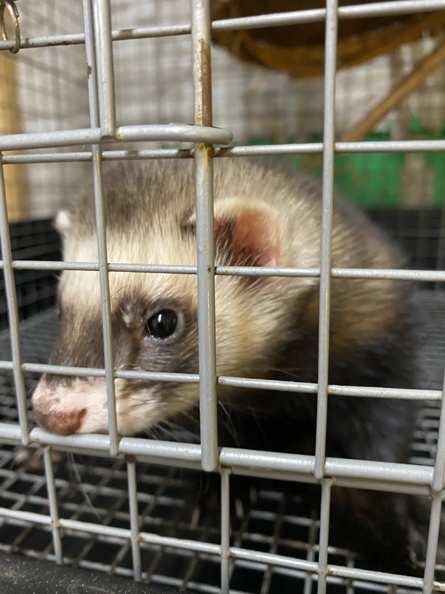 普通の茶色の毛をしたフェレットです。 呼んでも来ません。 じゃれて噛んできます。