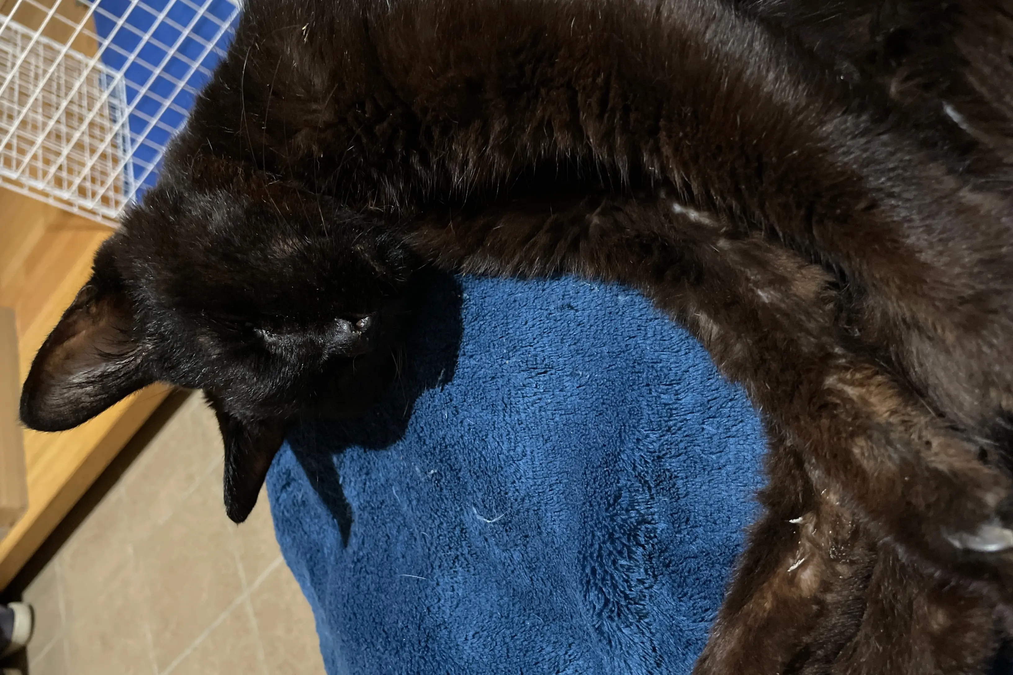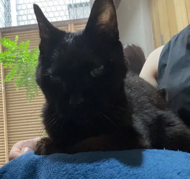 8月14日、黒猫ちゃんを保護しました。 保護当時鼻血が出ており、ガリガリで獣医へ連れて行き点滴と投薬をしています。 去勢手術は済んでいるようです。 非常に人懐こい子です。 鳴き声はダミ声で、体は小さめです。