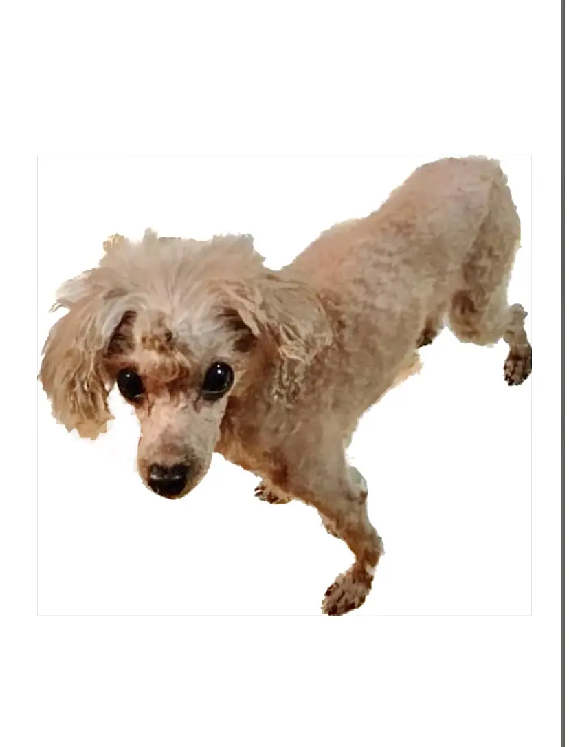 ・毛色 薄茶色 ・サイズ 小柄 細身 2kg ・全身短い毛 頭だけ長毛で1箇所ちょんまげ結びをしています ・首輪なし 白い洋服を着用