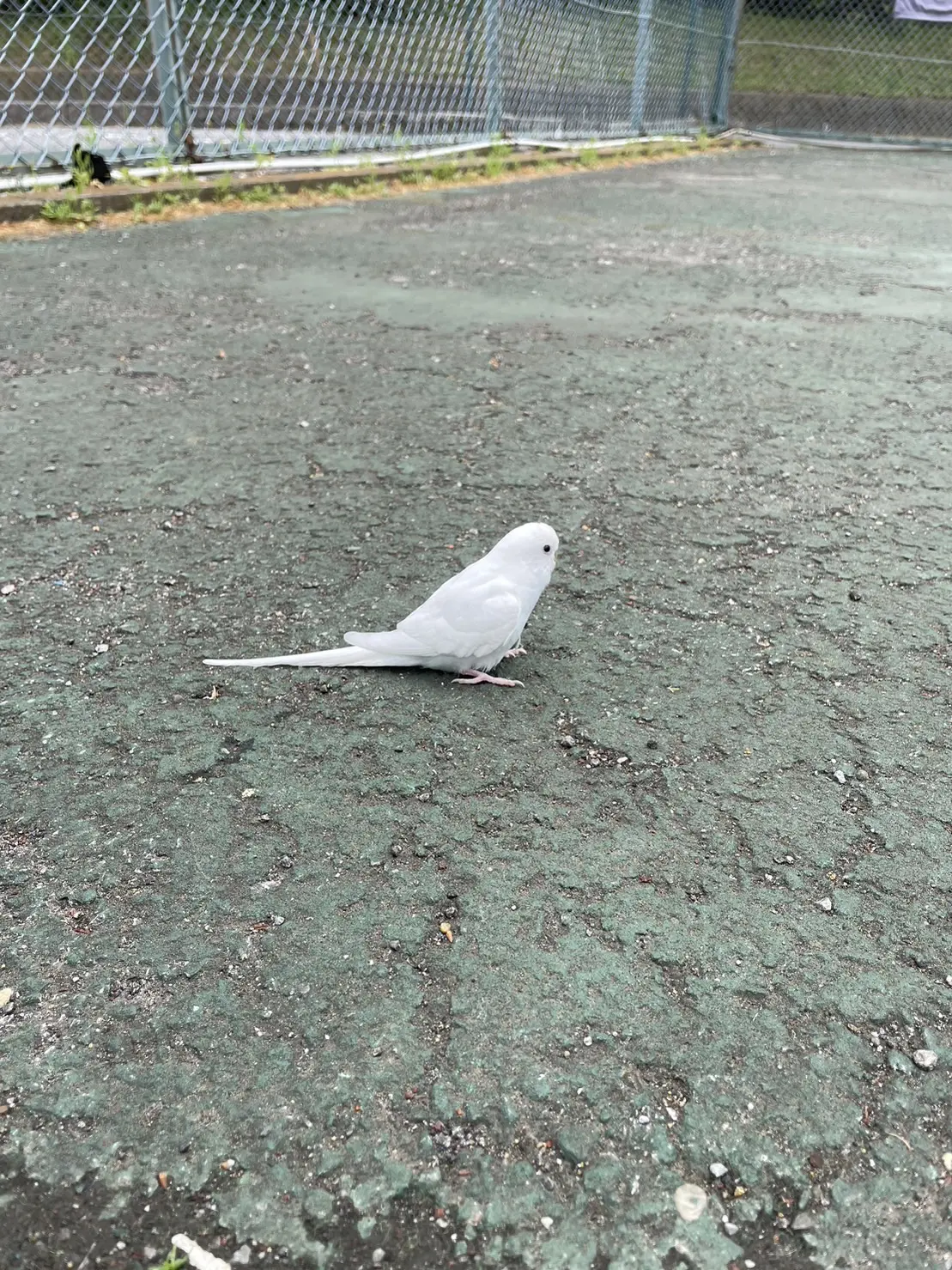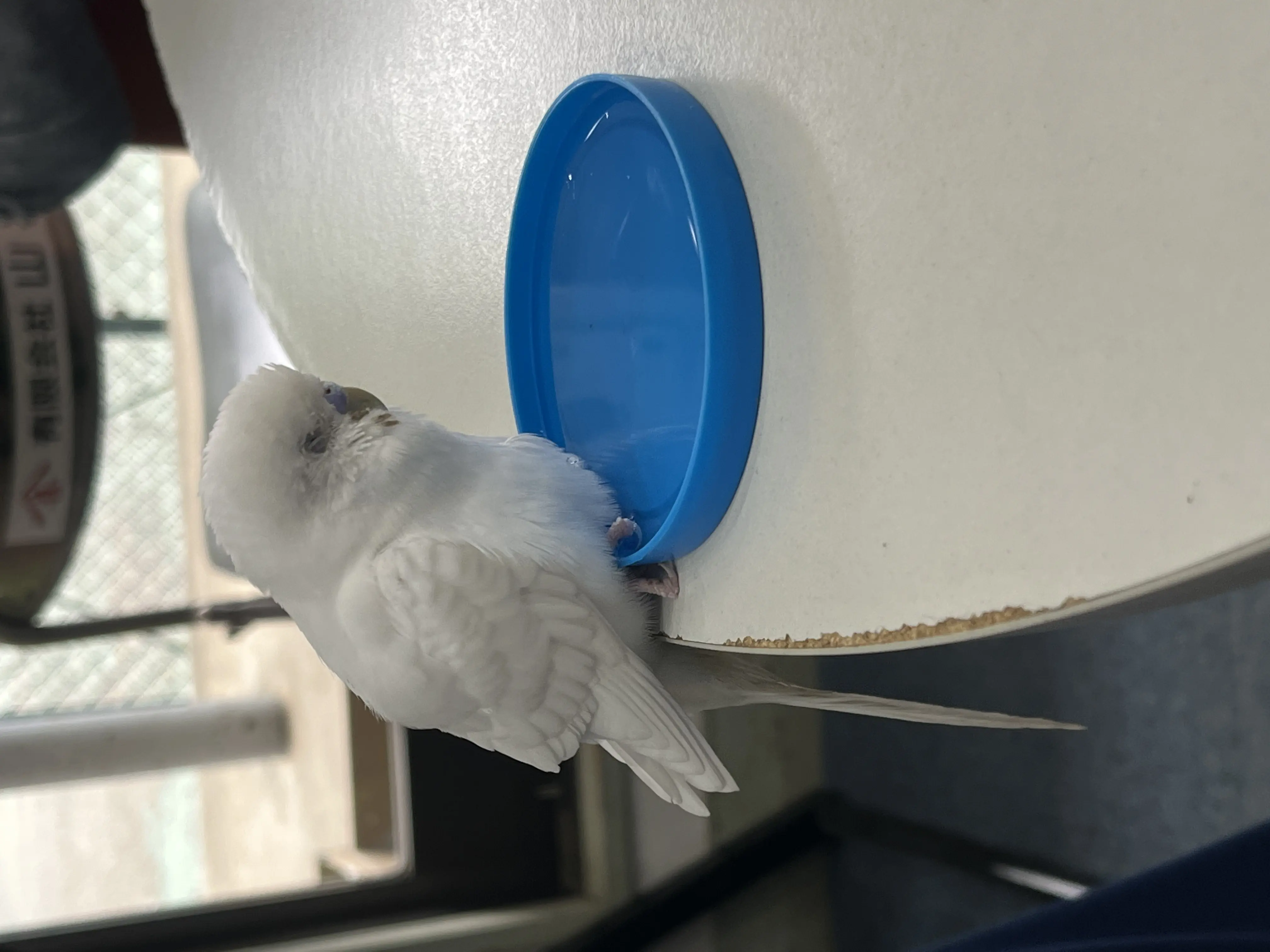 羽が白く、鼻は水色。 人に慣れていて、知らない人でも指を出せば乗ってきます。 松戸警察に届け出済みです。