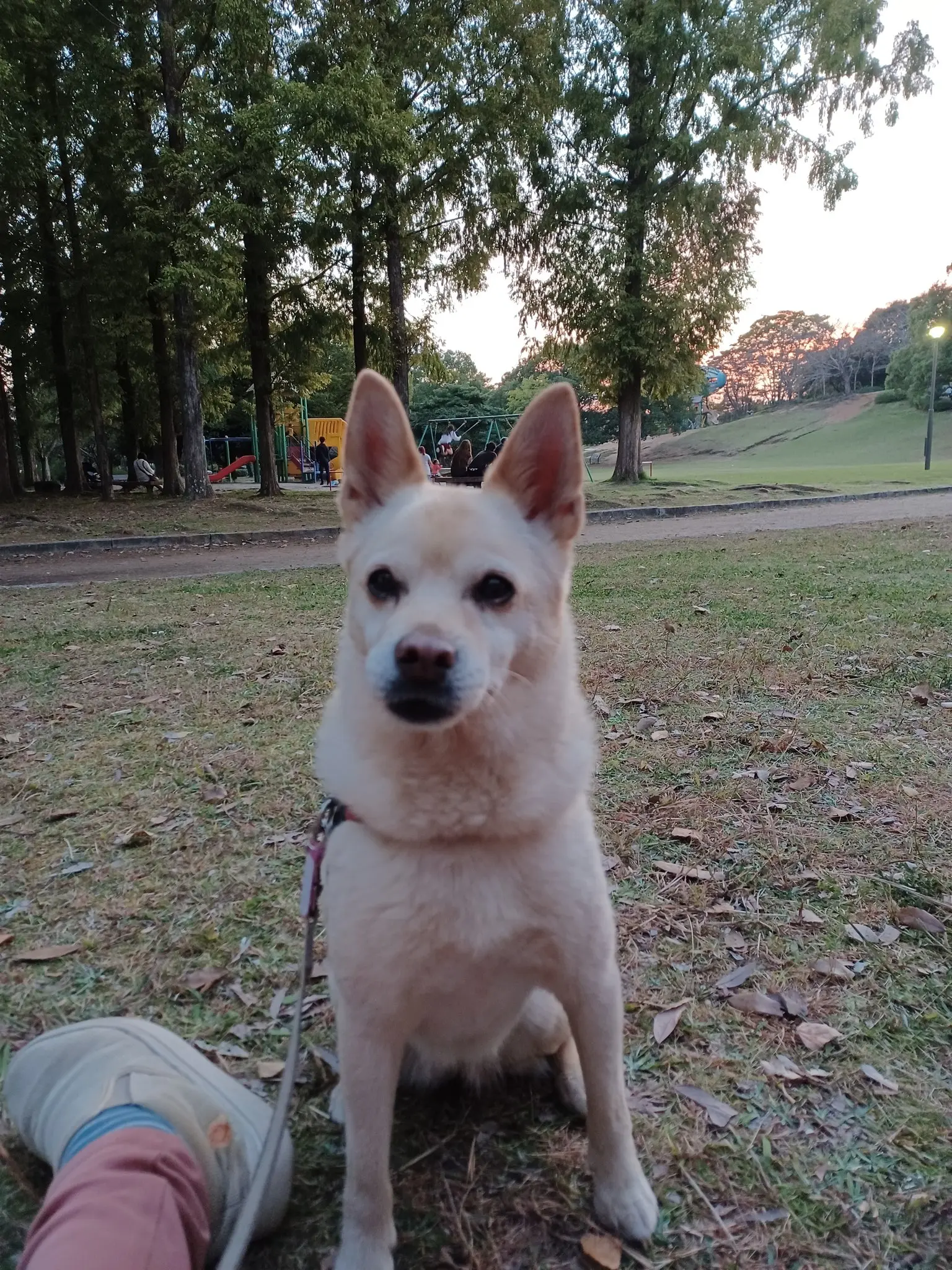 鼻が少しピンクです。白に近いベージュ色です。 赤に青い十字模様の小型犬用ハーネス(逸走時)。 目撃地5/4かすみがうら市6号下稲吉の交差点。 目撃、保護された方はご連絡お願いします。